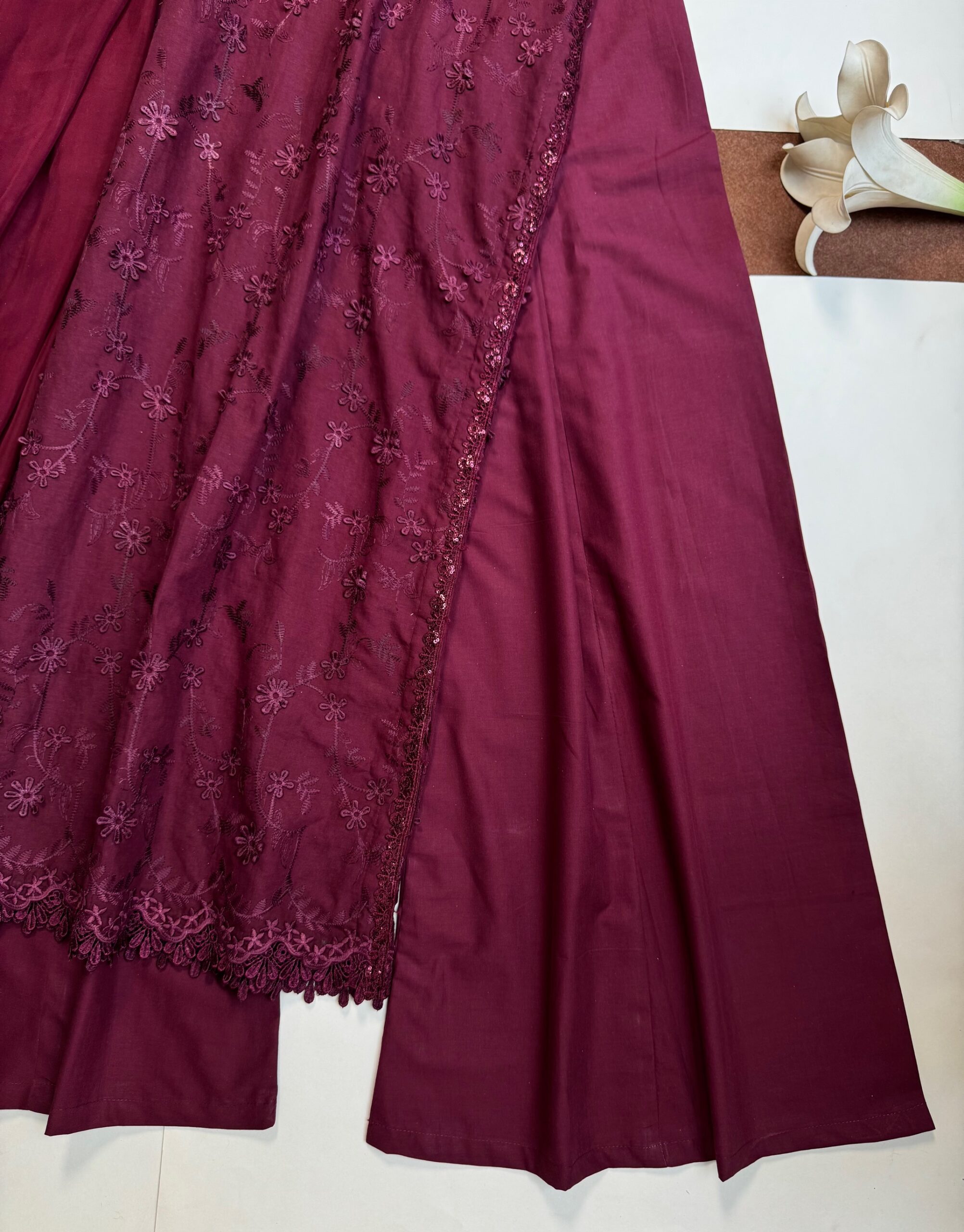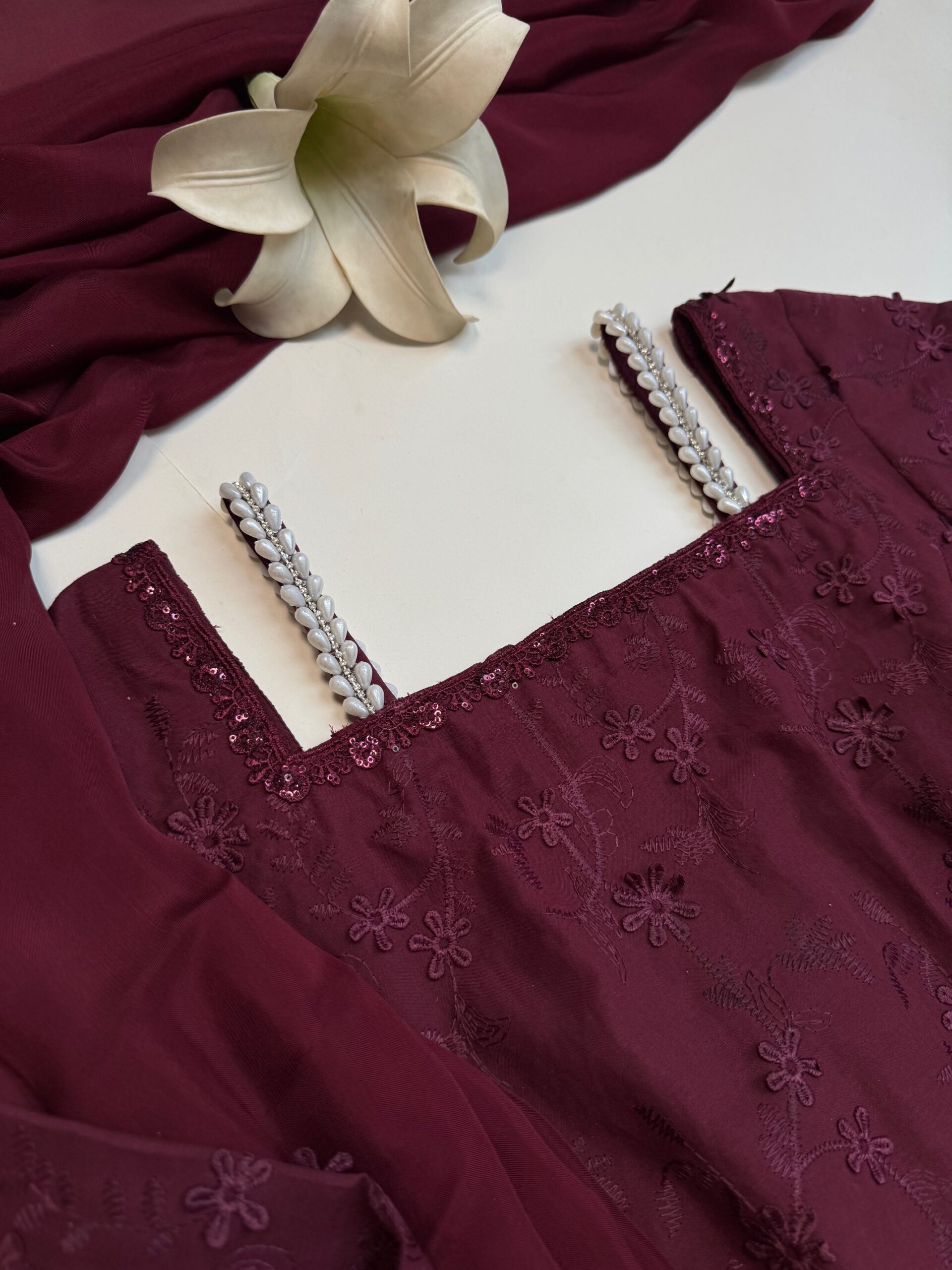 - Shirt fabric: Lawn floral chicken embroidered