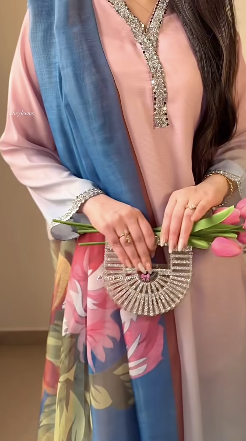 - Description: Ombre shade shirt paired with culottes and floral printed dupatta.